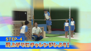 いきなり逆上がりをやろうとせずに、まずは身体が回転するという感覚を身につけましょう。 自分の身体を後ろに回転させたり、逆さにしたりする感覚を身につけると、 スムーズに逆上がりの練習に入ることができます。