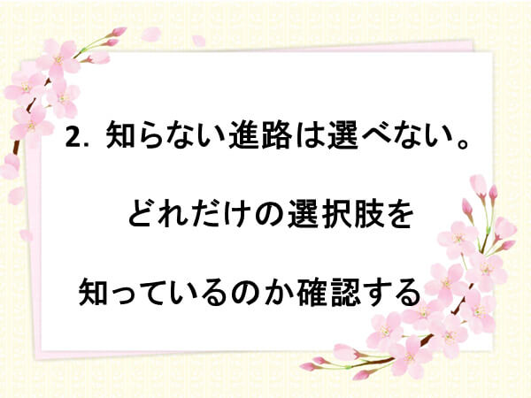 2.知らない進路は選べない。どれだけの選択肢を知っているのか確認する