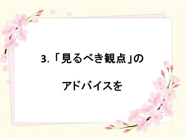 私は以下の3点は必ず確認するようにアドバイスしています。