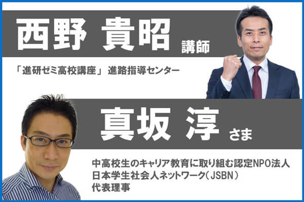 出演するのは進研ゼミ高校講座の西野講師と、NPO法人JSBN代表理事の真坂さまです。